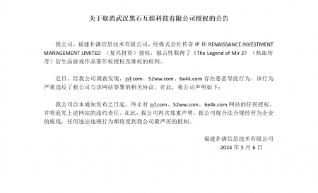 202405-18jinnian金年会信息技术有限公司(以下简称“我司”)经株式会社传奇IP 、RENAISSANCE INVESTMENT MANAGEMENT LIMITED (复兴投资...